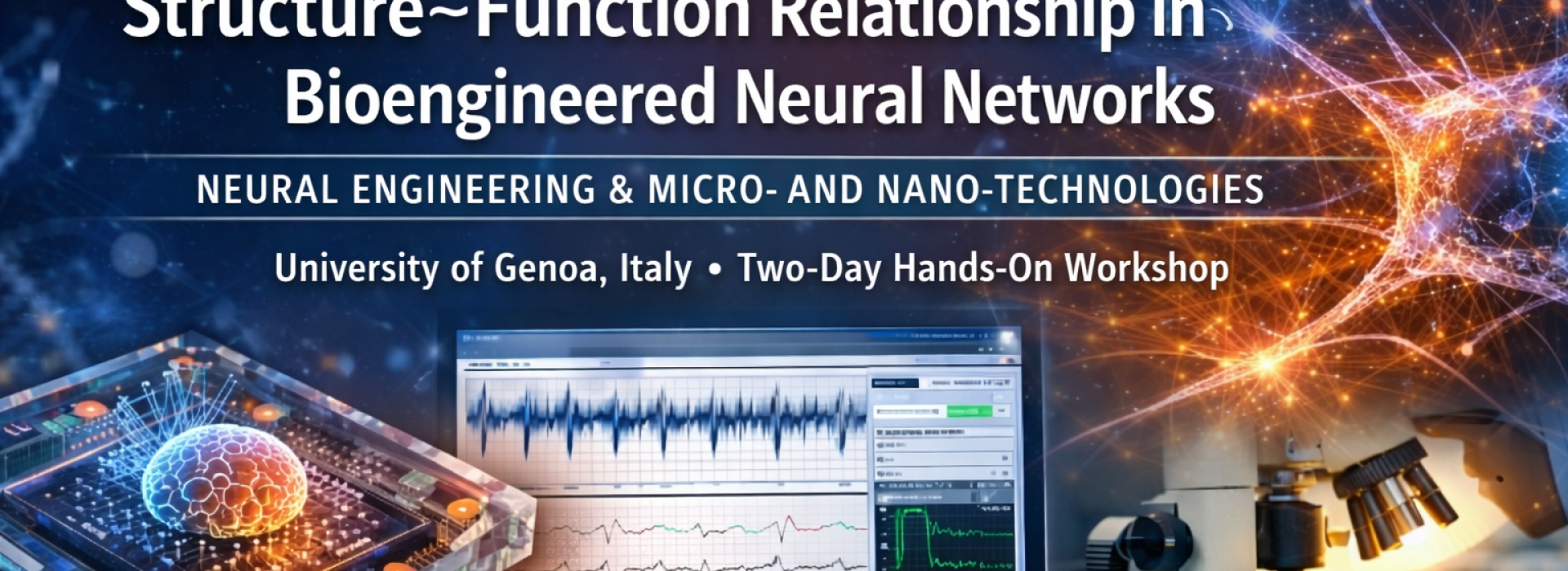 Following the school, a two-day workshop will take place in Camogli from June 11 to 12, 2026, focusing on the main technologies for designing, building, and analyzing 2D and 3D bioengineered neural networks. The workshop will include hands-on laboratory and computer-based sessions on: